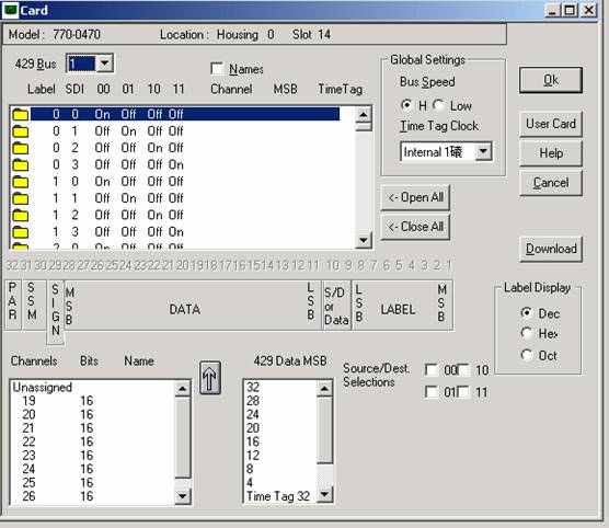 ARINC子429卡具有接收数据字标识时间功能。时间标识可选内部(毫秒时钟)内部1µs时钟或外部时钟。通过分配PCM字,32位时间标识数据可选择为每个字符。该卡也有一个外部时间标识复位,用于同步多格卡。