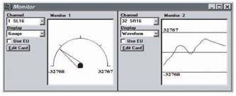 监视器提供不同的显示选择。工程单位方式选择将原始数据转换为如度,应力和电压这样的规范单位;波形方式显示为示波器波形形式;表盘形式以表盘显示数据,以十进制十六进制或二进制形式方便地读取表盘检测数和数字数据。